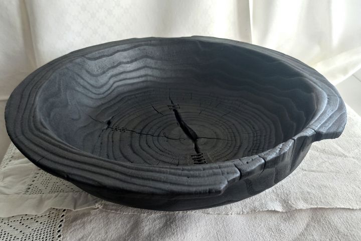 Блюдо, тарелка деревянная, способ обработки поверхности обжиг.