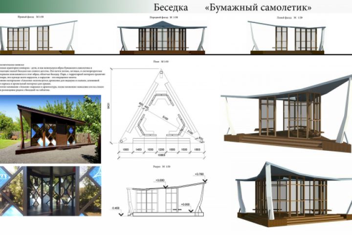 Изначально сооружение проектировалось как беседка, в процессе было расширено и переработано в выставочный павильон. Разработаны концепция, архитектурное решение стадии Р и интерьер.