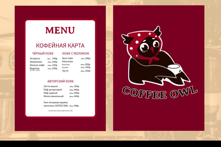 Меню было разработано в процессе создания логотипа и фирменного стиля для компании.