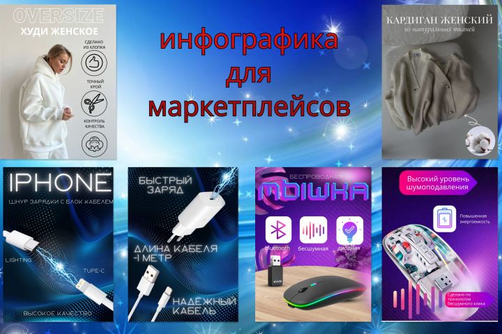 Меня зовут Татьяна. Создам для вас продающую карточку товара, сделаю качественную инфографику для самых известных маркетплейсов Wildberries и OZON.