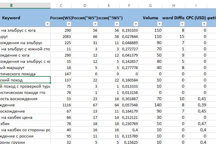 семантика для сайта по организации туристических походов выполнено в нескольких программах