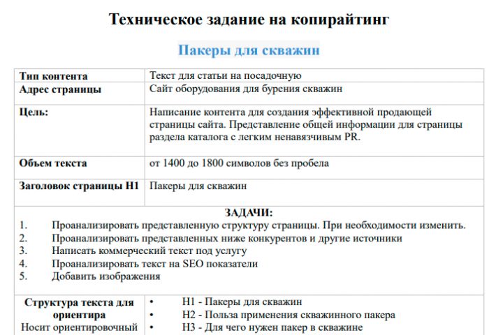 ТЗ на копирайтинг с ключевыми и LSI фразами, всеми необходимыми SEO показателями