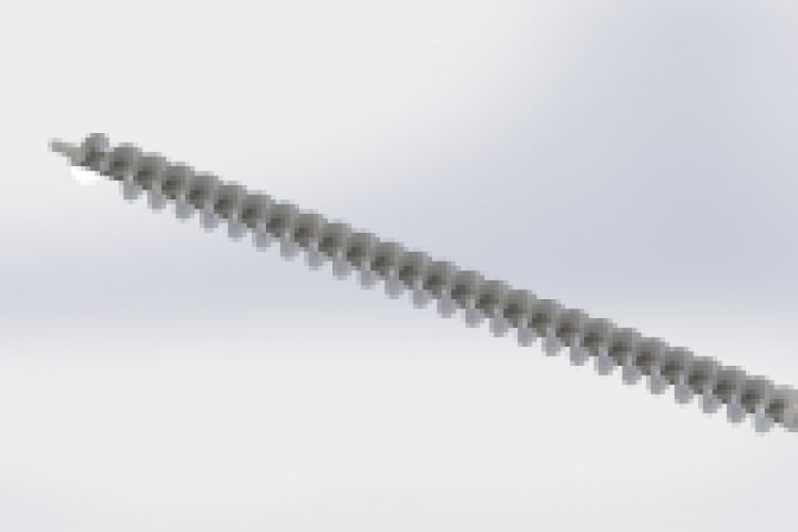 Шнек для транспортировки по желобу сыпучих или вязких продуктов. Нержавеющая сталь, шлицевая цапфа.