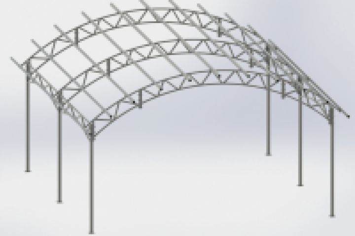 Частично разборная модульная конструкция. Предусматривает увеличение пролета путем использования ферм-вставок разных размеров.