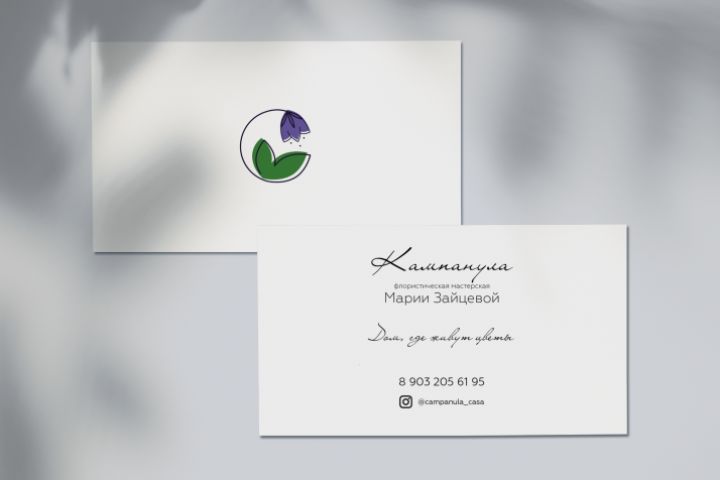 Разработка логотипа, подбор шрифта, оформление визитной карты флориста.