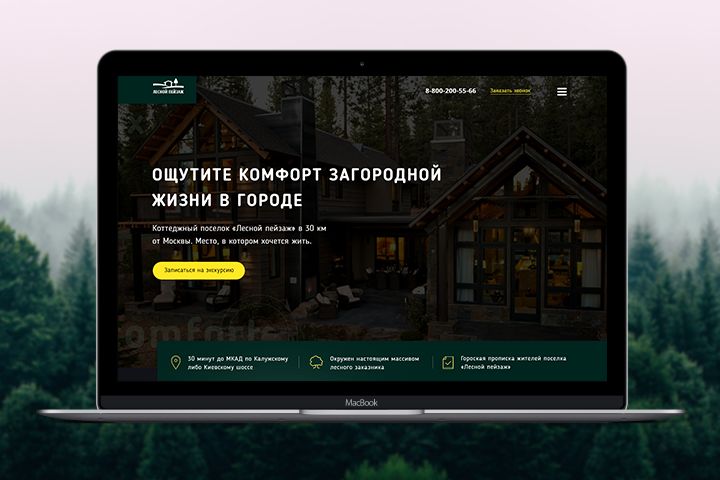 Заказ на дизайн сайта поступил от компании, занимающейся строительством коттеджных поселков в Москве. Передо мной стояла задача подчеркнуть особый статус поселка, готовность коммуникаций и близость города. Кроме того, сайт, продающий такой дорогостоящий товар, должен нескучно доносить до пользователей большое количество полезной информации.