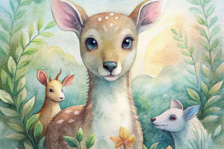 Иллюстрация к детской книге, добрые животные. Нейросеть Rekraft.
