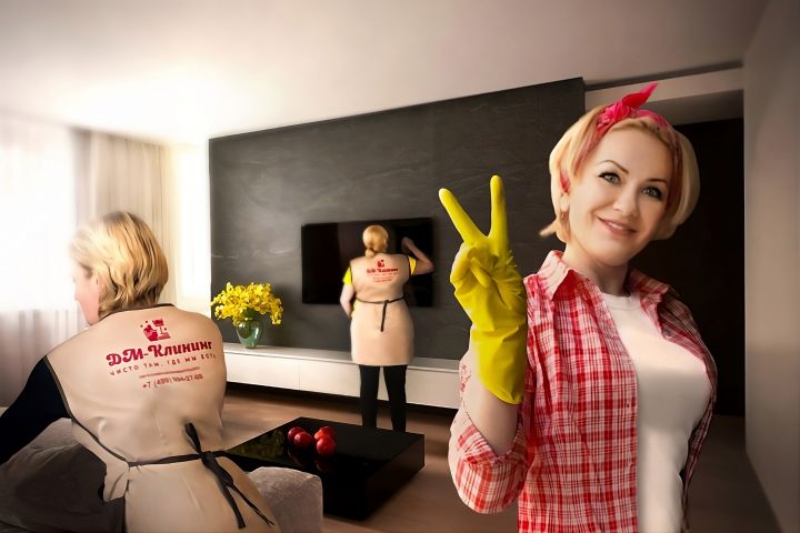 Была поставлена такая задача. Собрать реалистичный и красивый фотоколлаж, похожий на реальный снимок, на котором сотрудники клининговой компании будут убираться в красивой квартире, а так же добавить в композицию лицо компании справа.