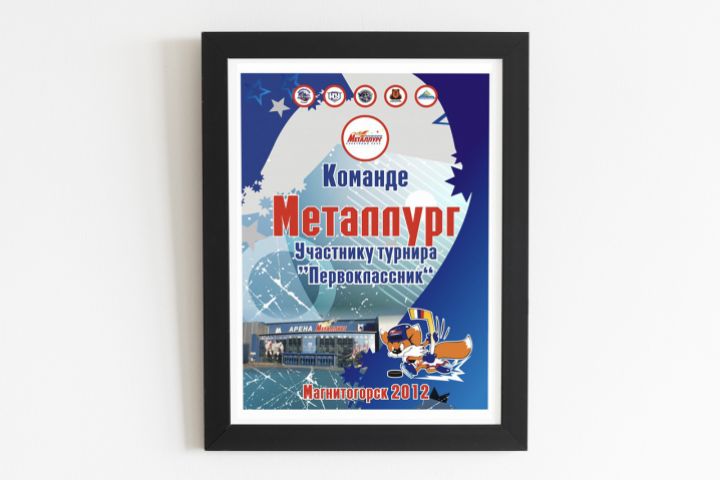 Макет наградного диплома, участникам хоккейного матча.