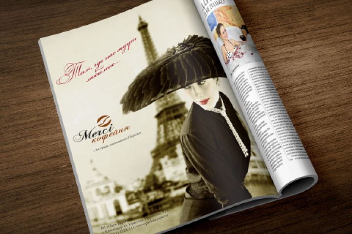 Рекламный имидж в журнал для кафе во французском стиле Мерси.