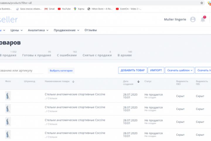 Заполнение карточек товаров на сайте Ozon.