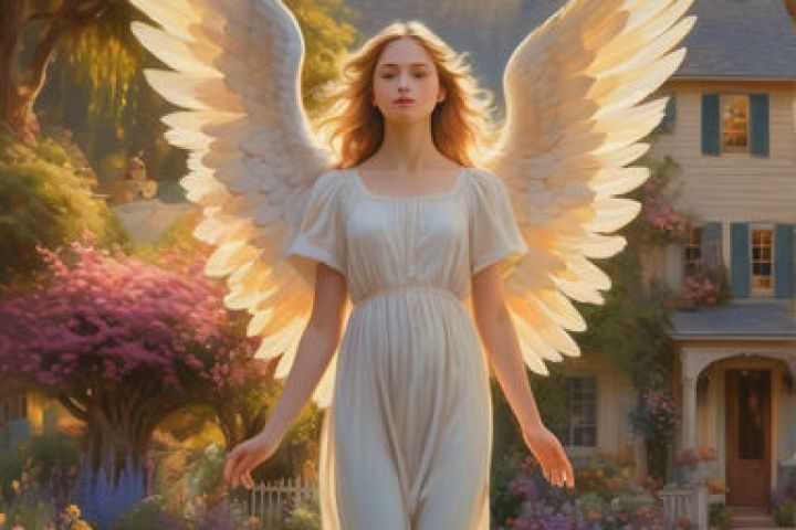 По заказу сделал работу месяц назад. Ангел во дворе, среди цветов и красивых птиц.