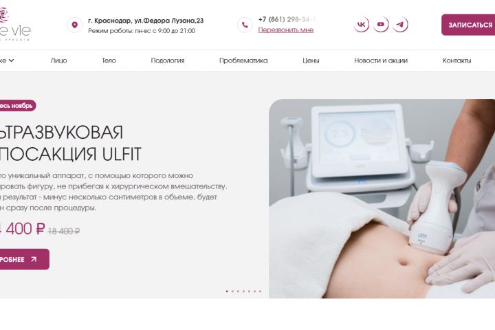 Разработка сайта для клиники красоты ( в данный момент ведутся СЕО работы, заполнение контента, продвижение )