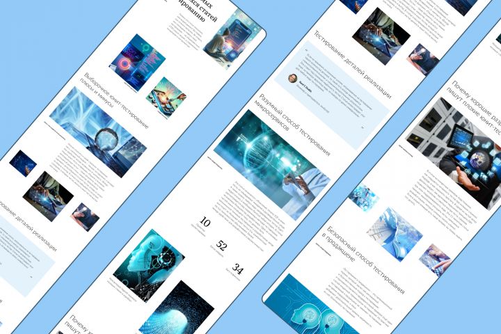 Дизайн лейдинг новостного сайта. Здесь ярко и красочно преподноситься очень интересная информация из области тестирования сайта. Каждая статья этого сайта оформлена яркими и качественными изображениями из современного мира. Цвета всех изображений сочетаются с друг другом, что придает блокам этого сайта воздушность и легко читаемым.