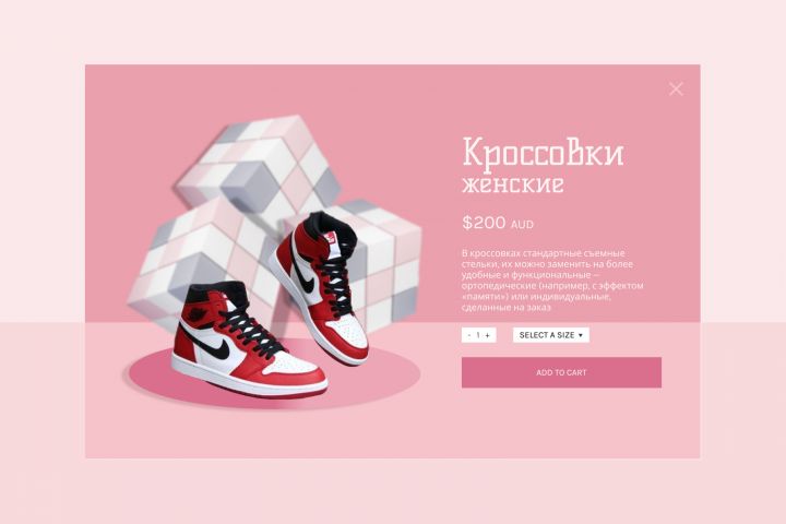 Дизайн карточки товара интернет магазина оригинальных кроссовок. Данный цвет способен вызвать у пользователей доверительное отношение к продающей компании, он ассоциируется со спокойствием и беззаботностью. Благодаря яркому, достаточно большому и качественному изображению которое привлекает к себе все внимание пользователя, побуждает пользоваться купить этот товар