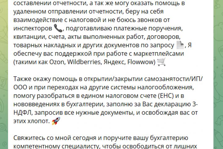 Был написан текст для бухгалтера, работающего на удаленке, с целью размещения этого текста в социальных сетях, для продвижения его услуг