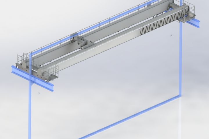 Кран грузоподъемный 16 тонн 22,5 метра. Был сделан проект, который включает: сборочные, деталировочные и габаритные чертежи, 3D модель, расчёты мотор-редукторов, dxf файлы.