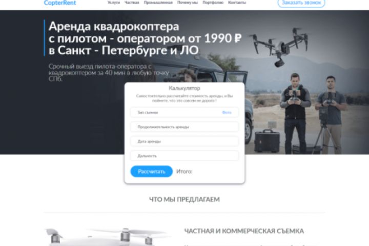 Лендинг создавался под ключ. Дизайн, верстка, система управления WordPress. Дополнительно был разработан калькулятор на главной странице, а также подключены сторонние сервисы для аналитики и сбора контактной информации пользователей.