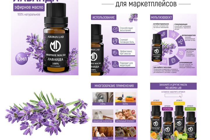 Создание карточек для 19 видов эфирного масла на основе картинок в стиле low poly