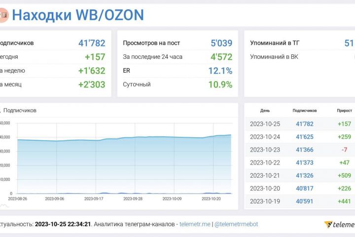 НАХОДКИ WB/OZON (https://t.me/+LU77_kLfBHthOTY6) Начало: 39000 пдп 4000 охвата Бюджет: 60000 Цель: выведение статистики в +, поднятие охвата и ER Итог: 41700 пдп 4700 стабильного охвата