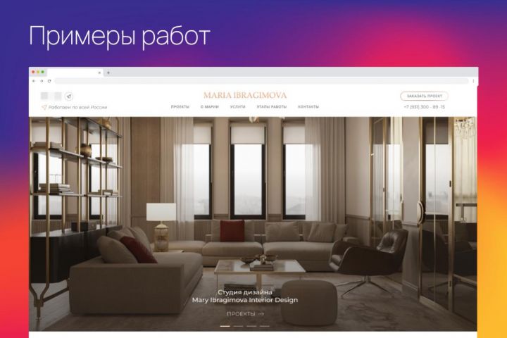 Персональный сайт основательницы студии Mary Ibragimova Interior Design.