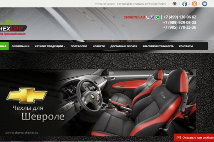 Сайт компании по продаже автомобильных чехлов