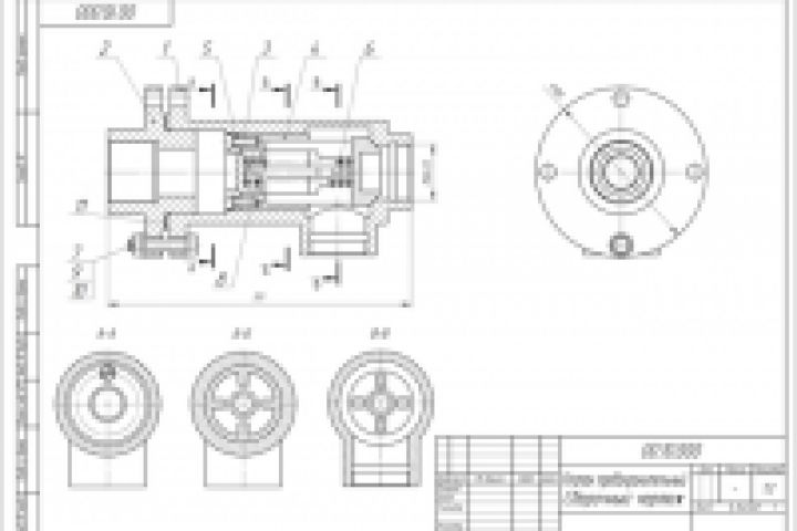 По заказу был выполнен сборочный чертеж "Клапана предохранительного" со всеми необходимыми разрезами.