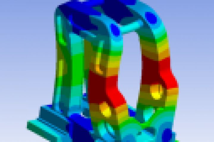 В диапазоне частот 0,1–1000 Гц был проведен расчет собственных резонансных частот корпуса прокатного стана с визуализацией мод колебаний. Расчет проводился при помощи метода конечных элементов.