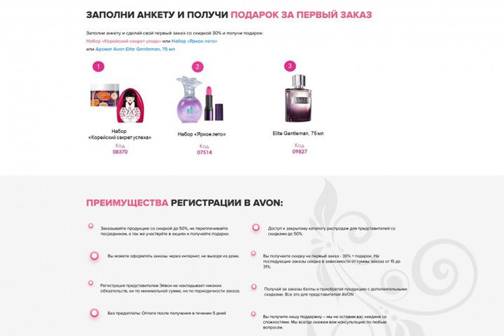 Лендинг для сбора регистрационных данных Avon 35000 pуб. / 14 дней