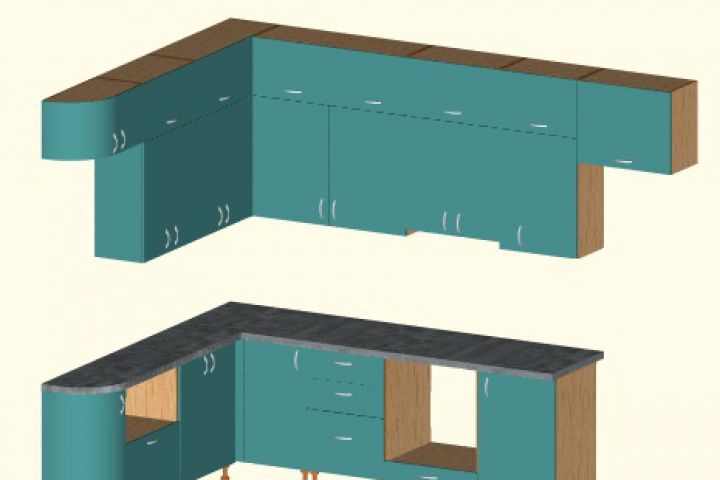 Угловая двухъярусная кухня