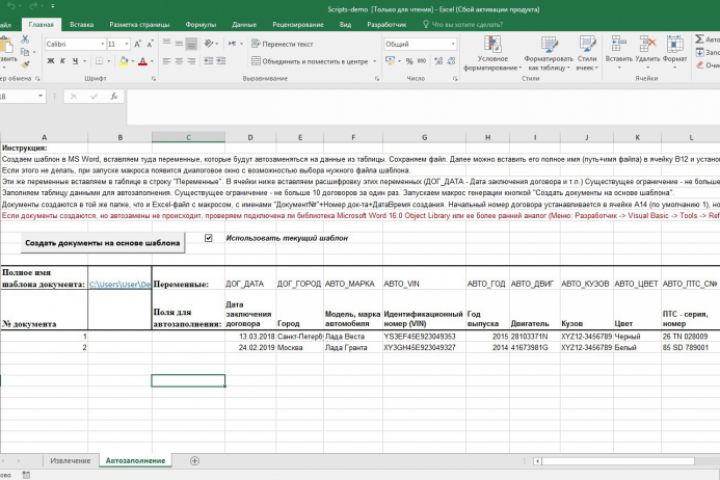 2.Скрипт (макрос) генерации документов Word на основе шаблона с автозаполнением. (Автозамена шаблонных переменных данными из таблицы. В архиве по ссылке также есть пример шаблона).