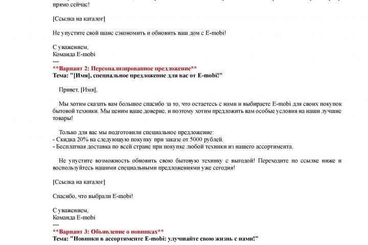 Письма для e-mail рассылки интернет-магазина бытовой техники
