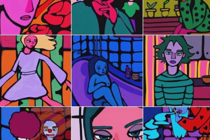 Коллекция разноцветных постеров, выполненных в уникальном стиле