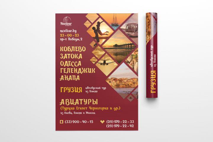 Цель: Выделяющийся среди конкурентов по стилю (текст на фоне моря/пляжа) и цветам (голубой, белый) дизайн с тематическими фотографиями.