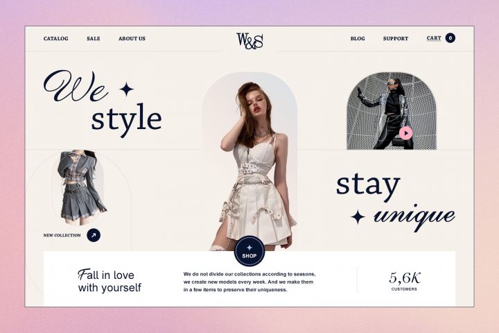 Цель создания - учебная. Необходимо было разработать дизайн концепт первого экрана для компании брендовой одежды.