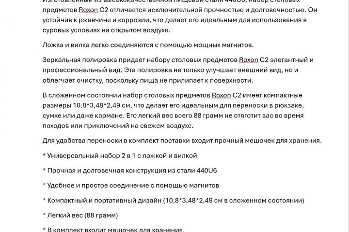 Нужно было сделать описание товара. Клиент выслал характеристики товара.