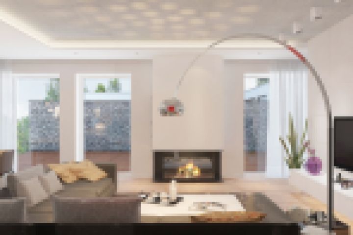 Интерьер гостиной с камином.