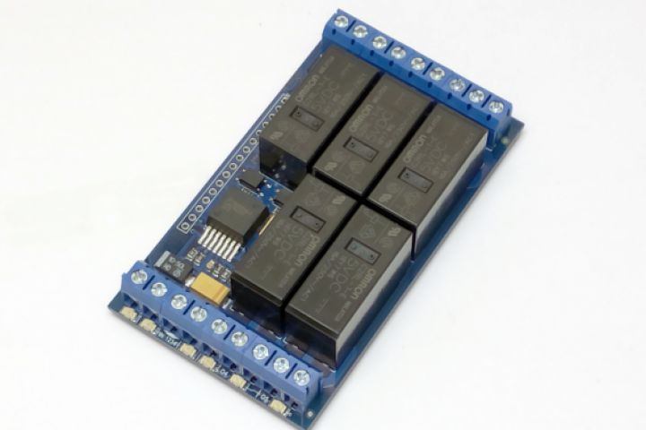 Реле для управления нагрузкой AC220В@16А (5 каналов) с подключением до 4-х релейных входных линий. Управление осуществляется по UART с платы контроллера, устанавливаемого на данное реле производственным способом (пайкой).