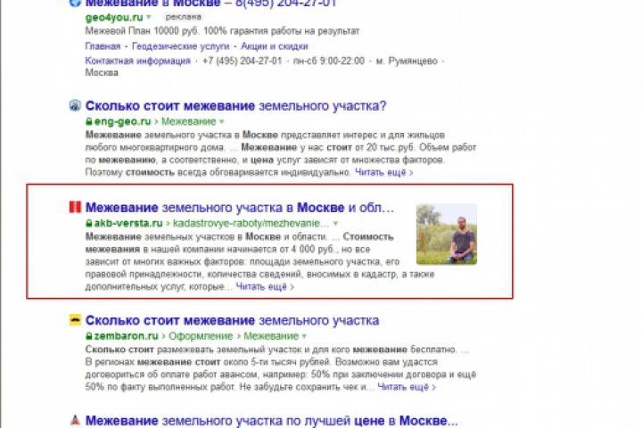 Топ по кластеру запросов "Межевание". Регион: Москва