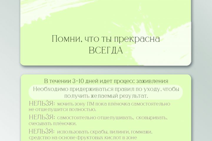 Разработка дизайна памятки после процедуры перманентного макияжа в виде 2-х сторонней карточки