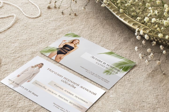Создание дизайна 2-сторонней визитной карточки для магазина одежды.