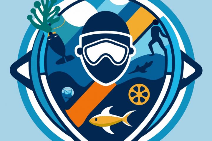 Пример логотипа. Изображение получено с использованием нейросети Recraft , был выполнен запрос "the logo of the Diving center, scuba diving.", на основании которого был сделан данный логотип.