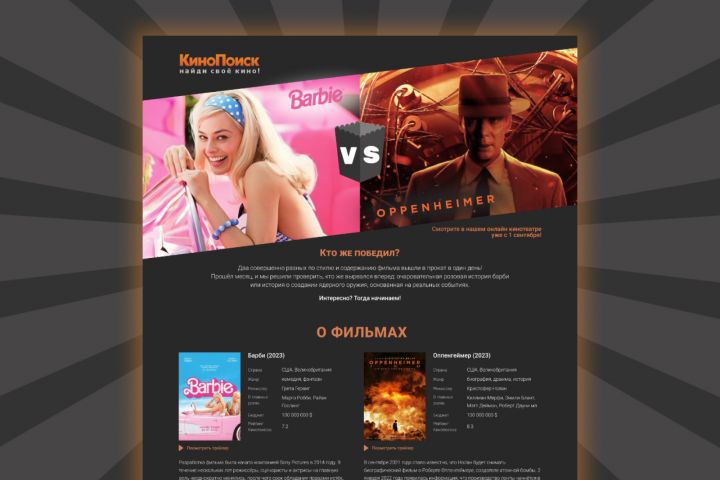 Статья для известного портала и онлайн-кинотеатра Кинопоиск. Задача: сравнить два противоположных фильма и тем самым анонсировать их премьеру в онлайн-кинотеатре.