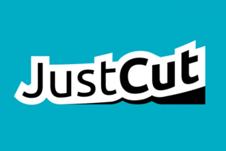 Компания «ДжастКат» занимается производством вырубных ножей. В основном эти ножи применяются для вырубки стикеров и упаковочных материалов. Логотип выполнен в виде слоя отрывающейся наклейки.