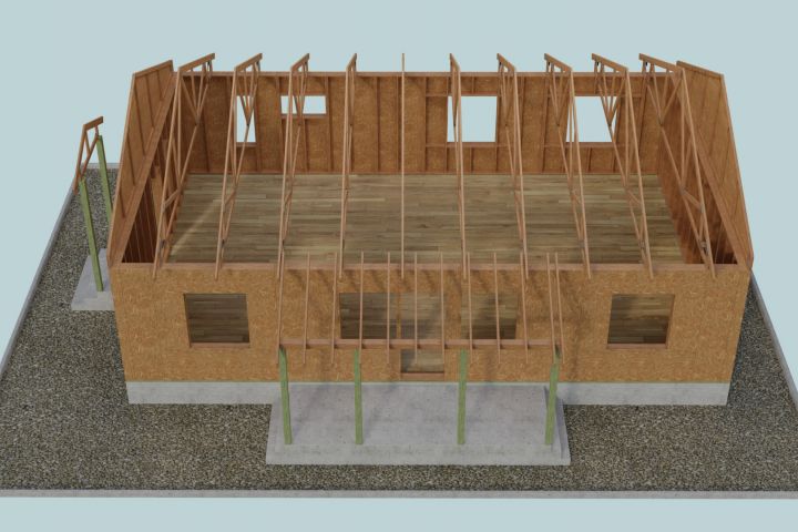 Модель конструкции деревянного дома