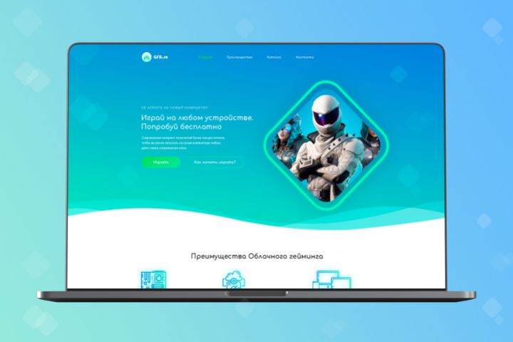 Дизайн Landinge Page для сервиса GFN которая предоставляет возможность