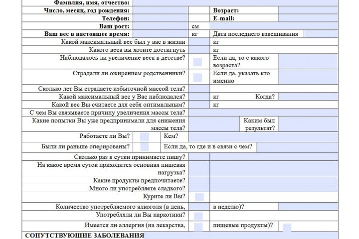 Подготовка анкеты на бариатрическую операцию