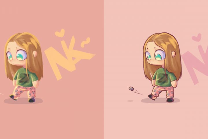 Упрощенный дизайн персонажа в чиби-версии( персонаж с неестественно миниатюрными пропорциями тела), без особой детализации в формате с контуром и без для создания объема картинки
