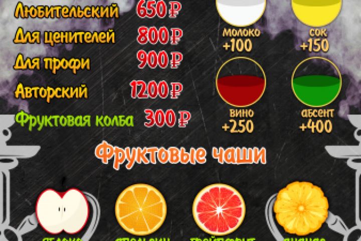 Кальянное меню для "Havana Club" г. Приморско-Ахтарск.