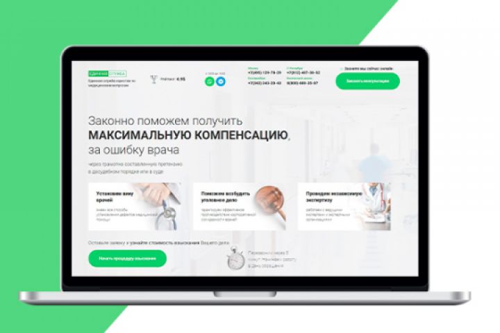 Адаптивный лендинг с wow анимацией для онлайн сервиса по защите пациентов. Долго утверждали дизайн сайта, делали АБ тестирование и добились конверсию +5%